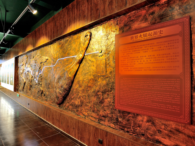 世界火腿博覽館是一個以世界火腿為主題的博覽館,用歷史-地域-工藝-文化為線索,通過展板、照片、聲光和布景等手法,翔實介紹了中國金華火腿、西班牙伊比利亞火腿、意大利帕爾瑪火腿、法國科西嘉火腿和巴黎火腿、美國的鄉(xiāng)村火腿等世界知名火腿的歷史人文,消費習俗、制作工藝、火腿美食等。