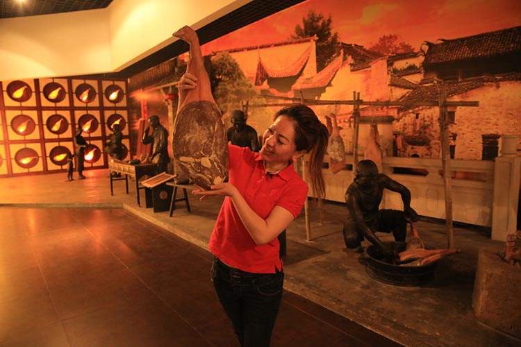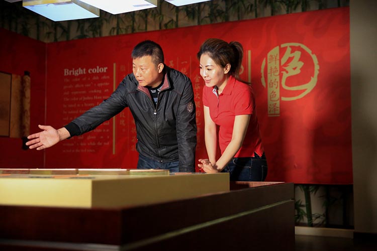 在火腿博覽館取景的過程中,主持人對火腿制作工藝和火腿的造型產生了濃厚的興趣:修胚、上鹽、洗曬、整形、發(fā)酵、聞香等工序不但精細且充滿了儀式感。陳師傅向她介紹:傳統(tǒng)火腿制作工藝工序多達36道,金字火腿遵循古法工藝制作,保證金字出產的每一條腿都是“復古”的“美味腿“。為什么說是美味腿?在金字火腿的中國火腿博覽館內,欄目組對著一桌的仿真火腿菜肴大呼驚嘆,忍不住都想拿起筷子吃上兩塊。