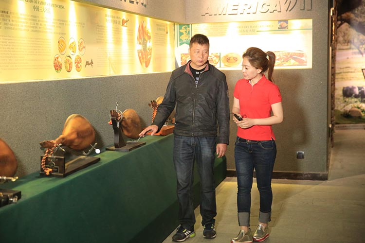 5月初,金字火腿、中國火腿博覽館和世界火腿博覽館迎來了一群特殊的客人——CCTV7《農廣天地》欄目組前來取景。金字火腿資深火腿大師陳師傅全程陪同攝制組參觀拍攝。