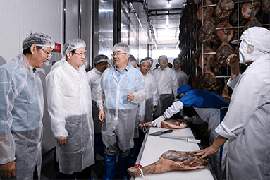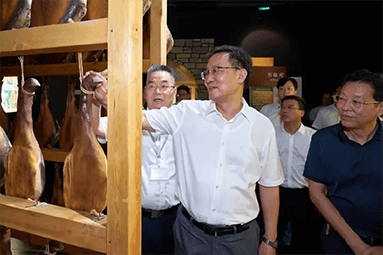 8月22日,金華市委書(shū)記朱重烈專(zhuān)程赴金字火腿公司調(diào)研金華火腿產(chǎn)業(yè)振興工作。朱書(shū)記在公司領(lǐng)導(dǎo)周?chē)?guó)華、馬曉鐘、吳月肖陪同下,走進(jìn)火腿文化展示館和產(chǎn)品展廳。